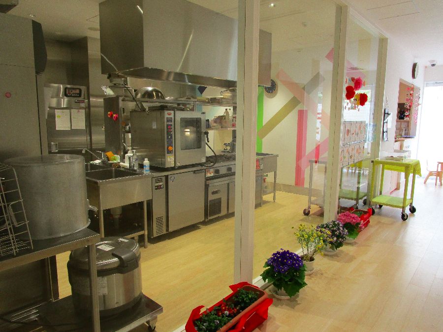 園舎はフランス人建築家のデザイン。窓辺には「色の木立」が飾られ、子ども達は町の風景や変わりゆく太陽の動き、そして天気などを常に感じ、明るく開放的な空間で過ごします。