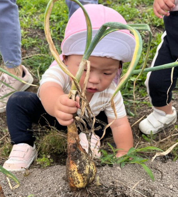 周りを畑や田んぼに囲まれた自然豊かな場所で、のびのびと保育をしている認可保育園です。