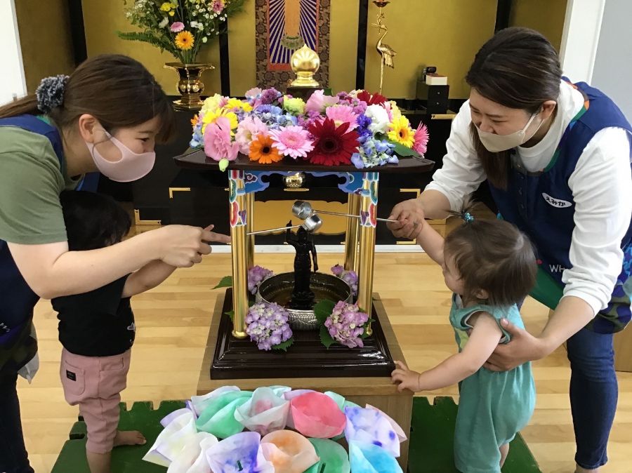 『共に生きる』真宗保育を大切にし、子ども達一人ひとりに寄り添った保育を心がけ、定期的な職員研修の他、1on1ミーティングを実施するなどして、日々研鑽を図ったり、職員連携を充実させています。