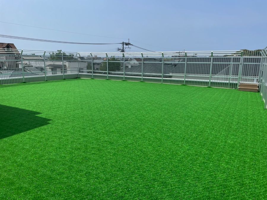 園舎は屋上が3階の3階建てで、閑静な住宅街にあります。屋上からの景色はすがすがしく、子どもたちがのびのびと身体を動かしたり、違う雰囲気での給食を時折楽しんだりしています。また、響き渡る子どもたちの声に「元気が出る」や「地域の活性化になる」等、地域の方々から温かく見守ってもらい、地域も含めて子どもを中心とした園づくりを進めています。『子どもの心と身体を守り、育てる』という基本的なことをコンセプトとすることで、保育の『あたりまえ』を見直し、『子どもの未来にとって』大切なことを日々学び合い、保育者も活き活きと過ごせるような園づくりをしていきます。