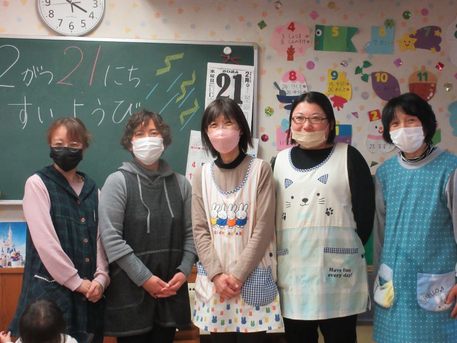 本園の保育士は、40代、50代で年齢高めですが、家庭的な雰囲気を大切にして子供たちとともに成長していけるように環境整備しております。