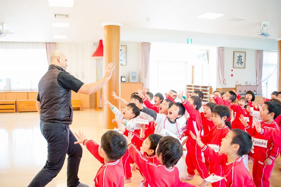 3.4.5才児は異年齢保育を行っており、年少の子は年長の子に助けられて、憧れや尊敬の気持ちをいだくようになり、同時に年長の子は自分以上に人に対して目配りや気配りが自然とできるようになります。