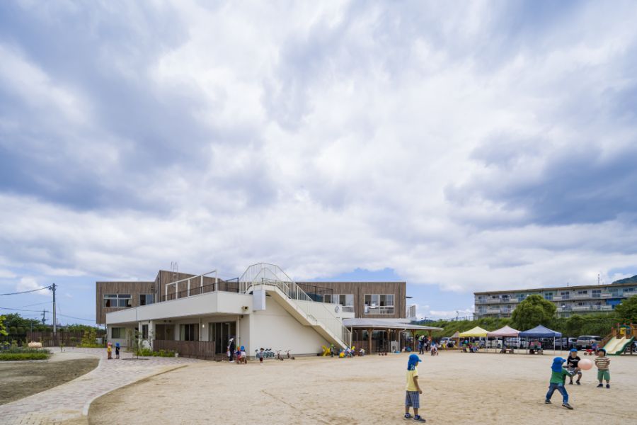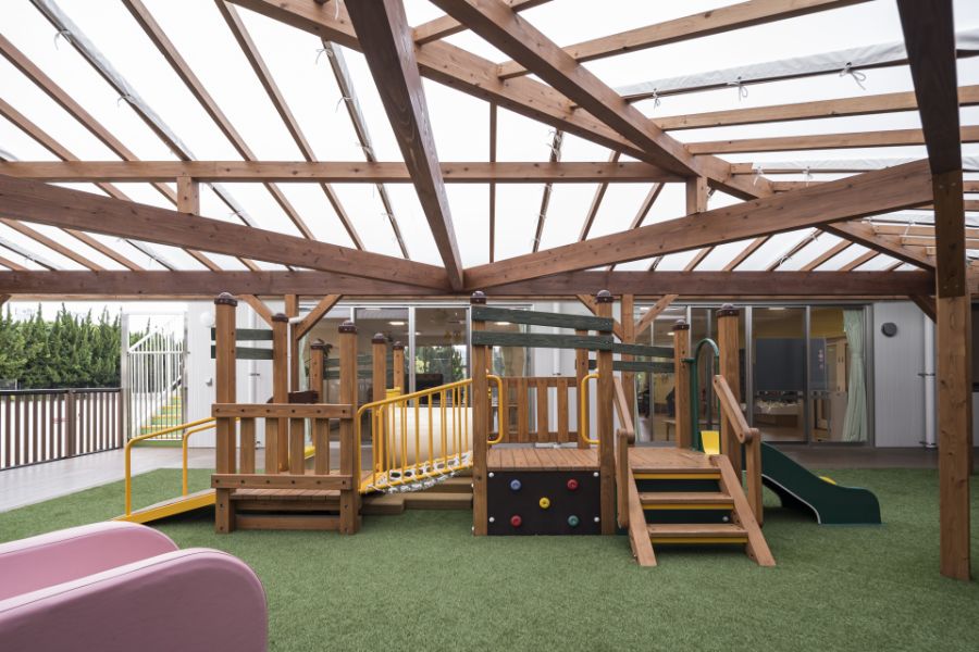 若杉山の懐に抱かれて、緑いっぱいのさわやかな風が吹き抜ける広い園庭で、子ども達は元気いっぱい走り回り、虫探しをしたり、草花を摘み、畑では季節の野菜を育て自然を感じなが過ごしています。